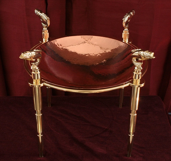 Bass Bowl – hand hammered copper with turned brass legs.